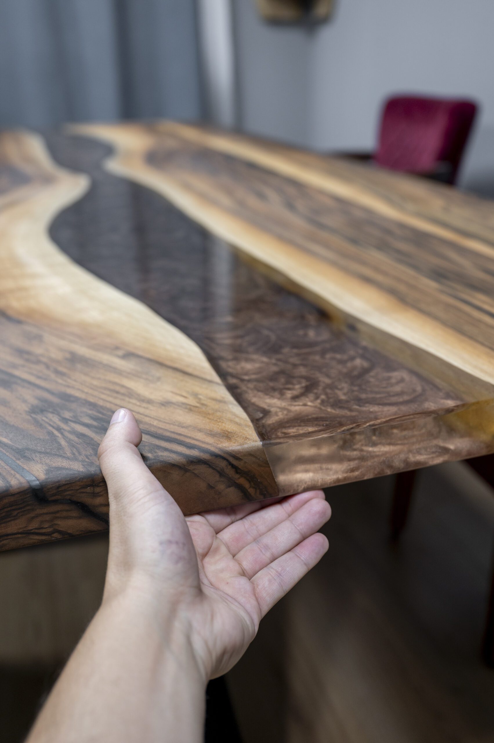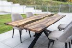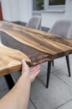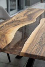 Namještaj od prirodnog drveta s originalnim dizajnom uvijek je odlična ideja za uređenje prostora. Stolovi od punog drveta i epoksidne smole kompozicija je u kojoj su skladno isprepletene kreacije prirode i čovjeka. Jedinstveni drveni uzorak, u kombinaciji sa obojenom ili prozirnom smolom, do željenog izgleda poliran je isključivo ljudskom rukom.