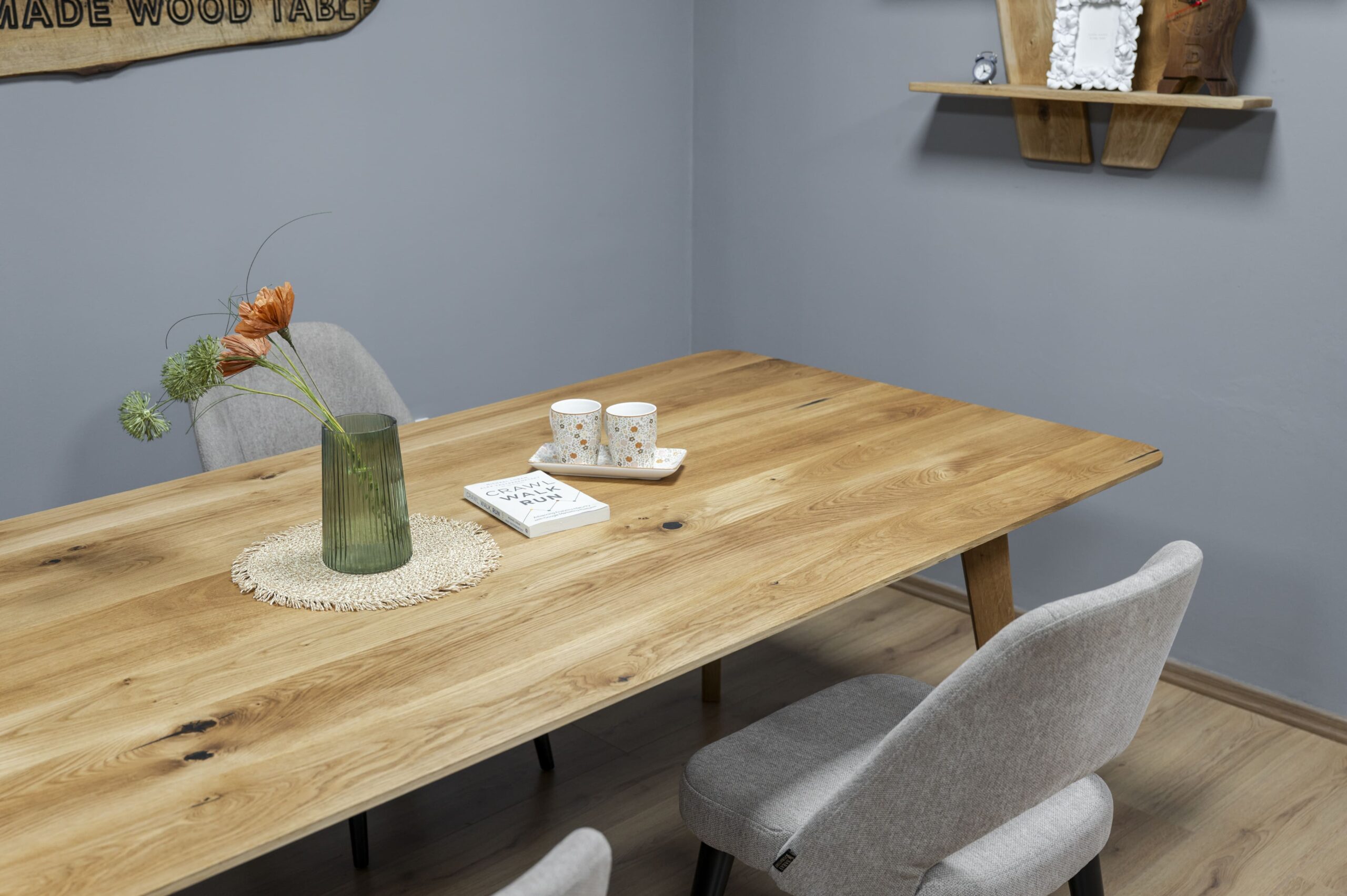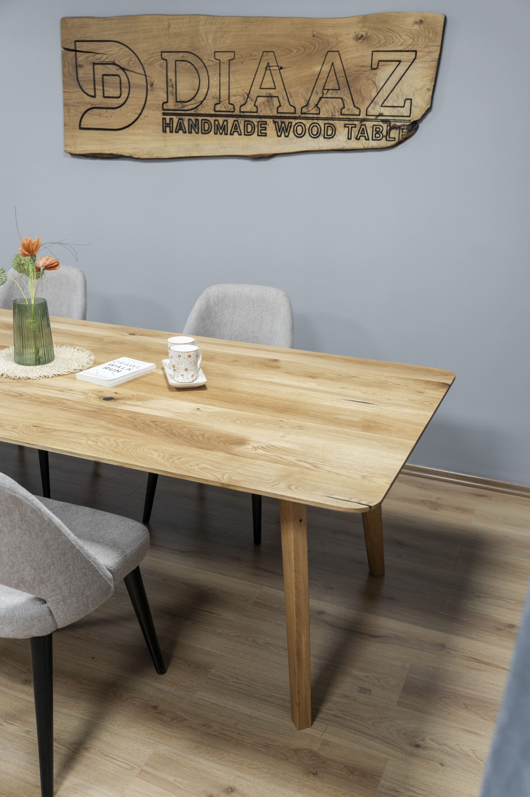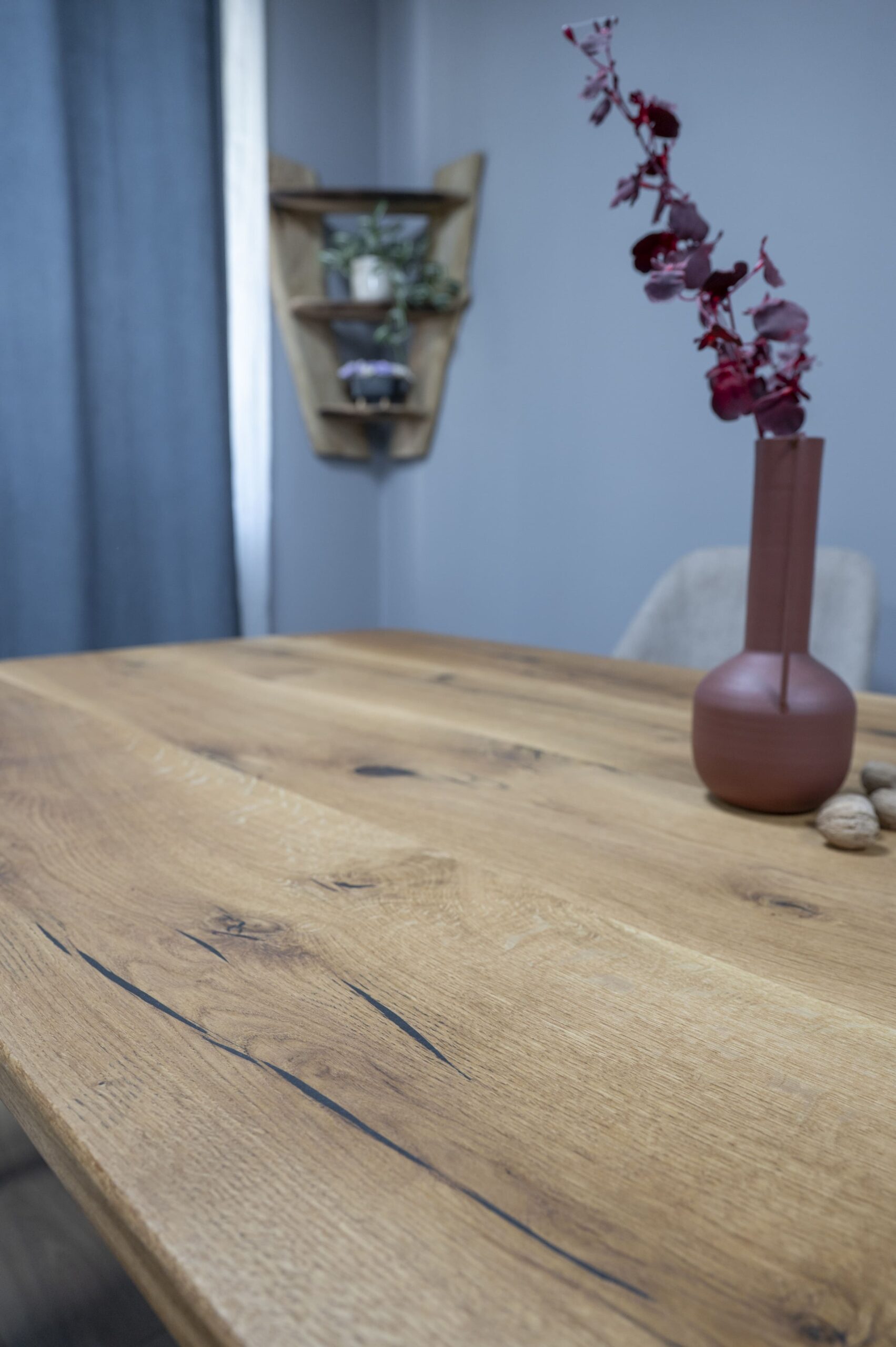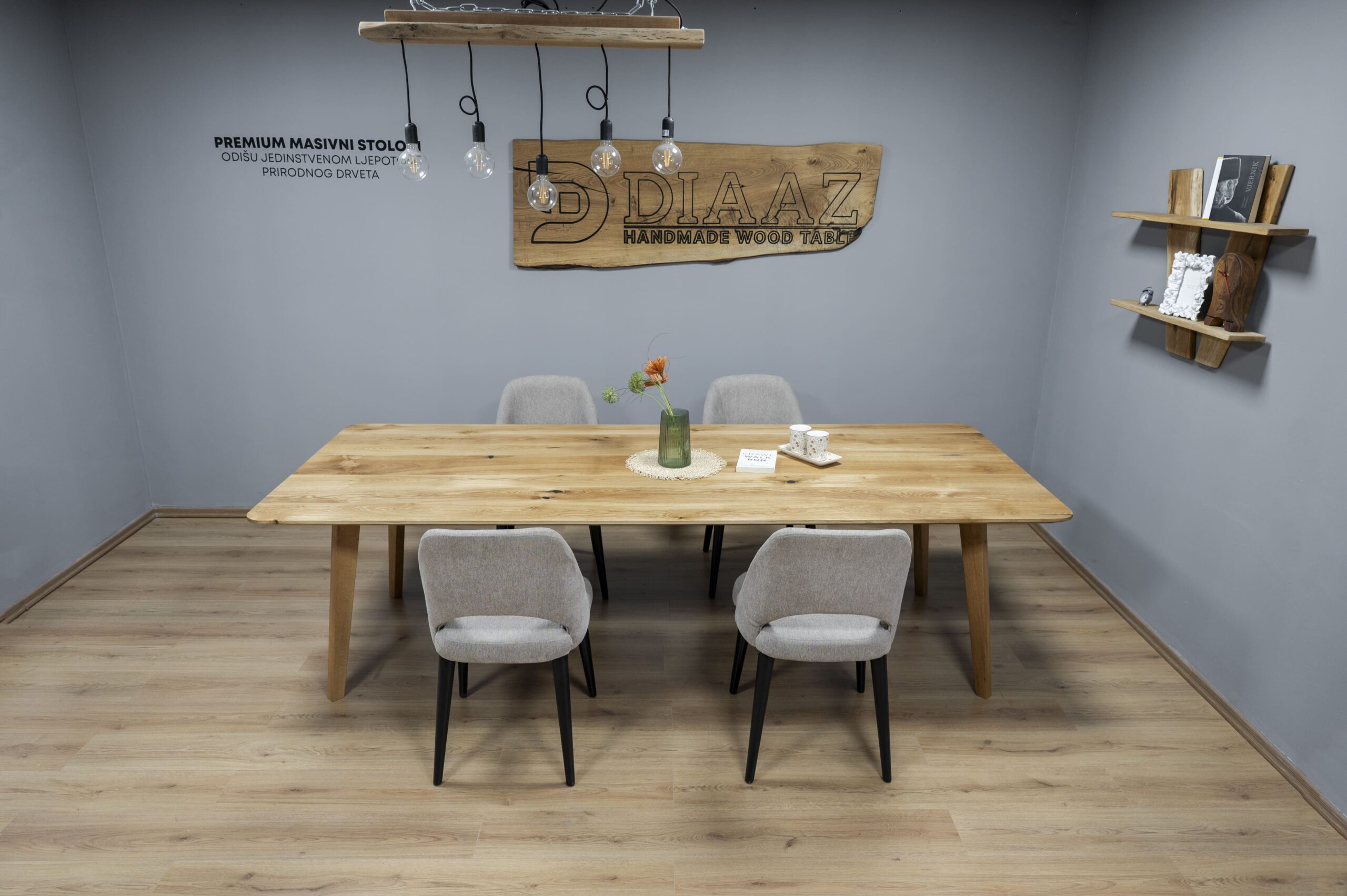 Ručno izrađen stol od punog drveta, hrast, prirodni dizajn izvorno iz stabla.