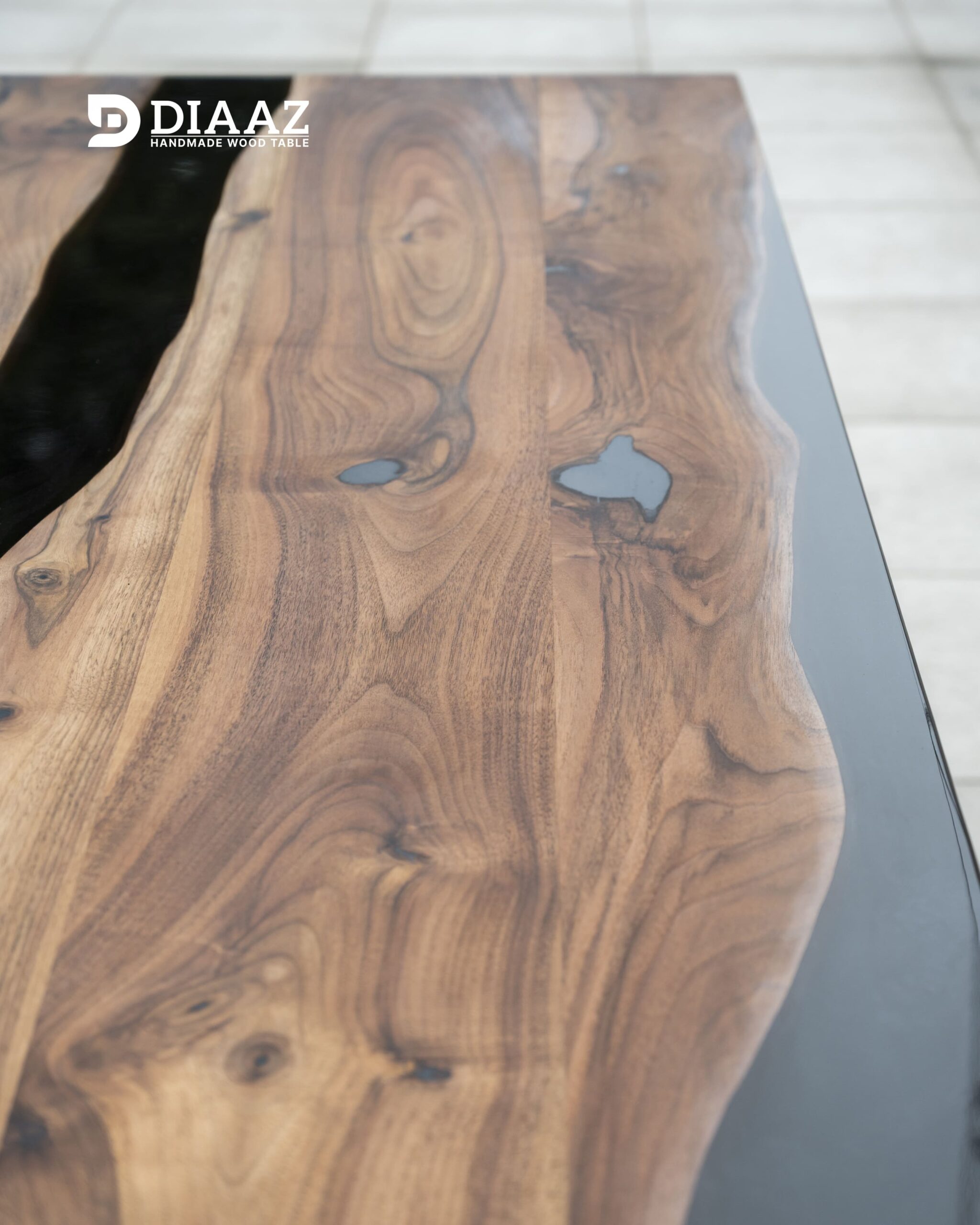 Vrsta drveta: Pareni tamniji orah, kvalitetno osušeni sa dodatkom crne epoxy smole (boja po želji)