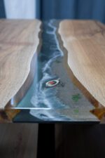 Namještaj od prirodnog drveta s originalnim dizajnom uvijek je odlična ideja za uređenje prostora. Stolovi od punog drveta i epoksidne smole kompozicija je u kojoj su skladno isprepletene kreacije prirode i čovjeka. Jedinstveni drveni uzorak, u kombinaciji sa obojenom ili prozirnom smolom, do željenog izgleda poliran je isključivo ljudskom rukom.